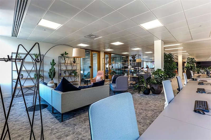 此番改造的一個重要主因是給到員工愿意回歸辦公室的理由。這意味著提升整體設施的實用性和美觀性,同時增加協作空間并整合遠程工作人員的需求。因此對當代前沿科技的投資成為關鍵要素。為了支持混合工作模式,設計公司在早期就任命了一名AV專家,以便可以通過應用程序或基于桌面的預訂系統預訂工作空間。同時,傳統工作站與可替代工作設施之間的界限也進一步擴大,平均(NIA室內凈面積)比率為1:10。此外,之前辦公桌與員工1:1的比例也被新的1:1.6比例所取代。