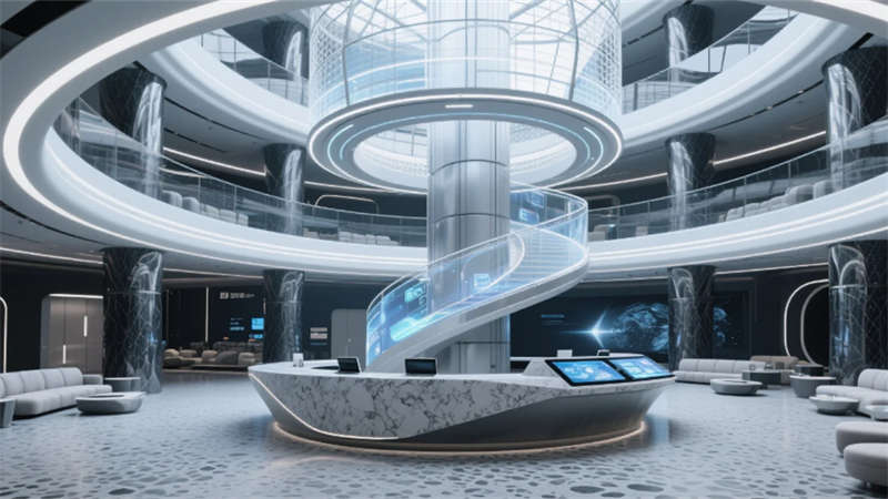 厘米級定位系統(tǒng)織就空間的數(shù)字神經(jīng)網(wǎng)絡(luò),實時感知行為軌跡的熱力圖譜。增強現(xiàn)實技術(shù)將虛擬協(xié)作層注入物理環(huán)境,會議紀要懸浮于白墻上空,項目進度可視化流淌在地面光帶中。智能環(huán)境控制系統(tǒng)如同無形的指揮家,根據(jù)溝通場景自動調(diào)節(jié)光域范圍與氣流速度,讓空間氛圍隨對話內(nèi)容自然脈動。當數(shù)字邏輯與建筑肌理深度融合,辦公室便升維為承載集體智慧的生命體。