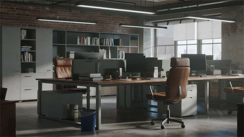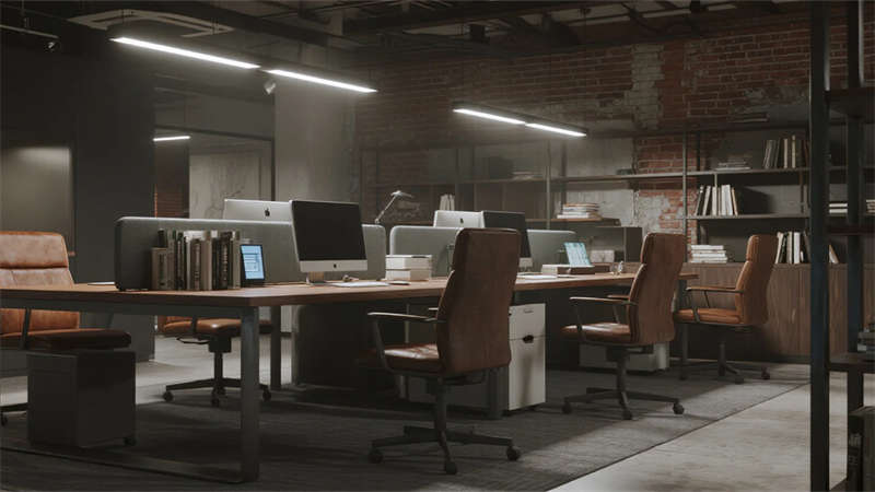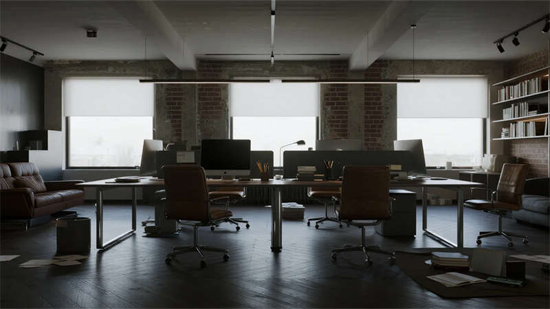 這組工業(yè)風(fēng)辦公室設(shè)計(jì)以裸露結(jié)構(gòu)和復(fù)古質(zhì)感為核心,通過(guò)混凝土、金屬和木質(zhì)材料的碰撞,打造出兼具實(shí)用性與藝術(shù)感的辦公空間。空間保留了建筑的原始肌理,如天花板的管線和墻面的磚紋,搭配黑色鐵藝家具和深色調(diào)軟裝,營(yíng)造出冷峻而富有張力的氛圍。局部通過(guò)皮質(zhì)沙發(fā)、綠植和暖光燈具軟化工業(yè)風(fēng)的硬朗感,增添人文氣息。