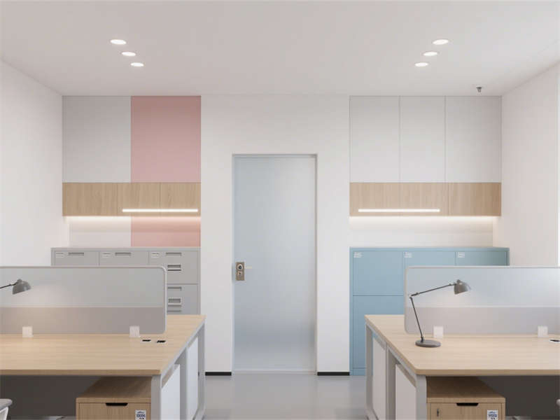 會議室聚焦會議需求,主視覺墻的色彩搭配緩解了會議的緊張感,智能會議屏與充足燈光滿足高效溝通。休閑茶水區(qū)作為員工放松的“第三空間”,卡座設(shè)計節(jié)省空間,色彩搭配活躍卻不雜亂,為員工提供舒適的休息環(huán)境。財務(wù)辦公室側(cè)重隱私與收納,磨砂玻璃設(shè)計兼顧采光與遮擋,充足的收納空間滿足財務(wù)辦公的特殊需求。儲物間則以實用為主,分區(qū)明確,便利的燈光設(shè)計提升了使用便捷性,整體保持與其他區(qū)域一致的風(fēng)格,讓整個辦公室成為一個協(xié)調(diào)統(tǒng)一的整體。