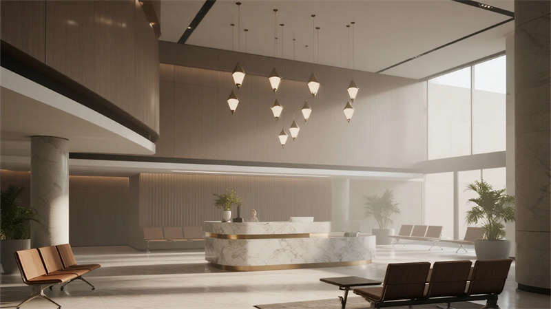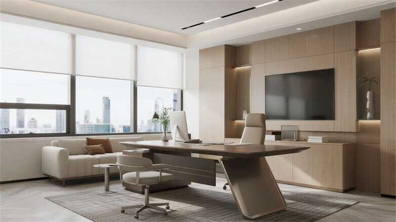 本設計以現(xiàn)代簡約風格為核心,強調(diào)功能與美學的和諧統(tǒng)一,為辦公環(huán)境注入靈動活力。整體空間采用淺色調(diào)基座,搭配玻璃幕墻和金屬元素,營造通透輕盈的視覺體驗。辦公樓外觀以幾何線條勾勒城市天際線,大廳作為樞紐,以簡約接待臺和綠植迎接訪客,傳遞專業(yè)與親和力。電梯間延續(xù)寧靜氛圍,鏡面設計拓展空間感。開放辦公區(qū)注重協(xié)作,靈活布局促進效率,自然光透過落地窗灑滿區(qū)域,綠植分隔既美觀又環(huán)保。經(jīng)理辦公室和總裁辦公室以私密性與開放性平衡,簡約家具與城市景觀結(jié)合,提升工作舒適度。會議室功能性強,玻璃墻增強通透感,便于創(chuàng)意碰撞。樓頂花園作為休憩綠洲,綠色屋頂與簡約座椅提供放松空間,呼應環(huán)保理念。設計融入蚌埠地域特色,汲取城市活力與自然元素,打造高效、舒適且可持續(xù)的辦公環(huán)境,體現(xiàn)現(xiàn)代工作方式的優(yōu)雅蛻變。