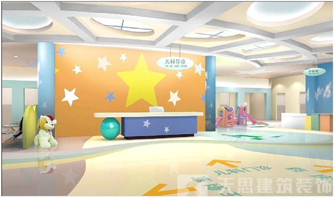 兒童是比較特殊且相對脆弱的生命群體,因此,兒童醫(yī)院裝修設計不同于綜合醫(yī)院的設計,其在保證醫(yī)療使用功能的基礎下,更要考慮到兒童的生理心理需求、行為特征等,從細節(jié)上體現(xiàn)兒童醫(yī)院的人文設計,力求為患兒建立一個安全溫馨、舒適友好、有趣愉悅的醫(yī)療環(huán)境,以緩解他們對醫(yī)院的恐懼感。