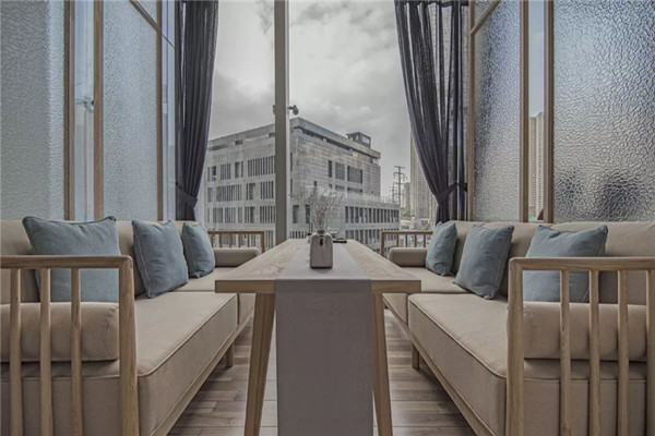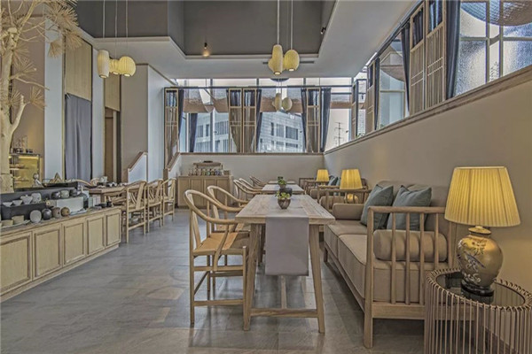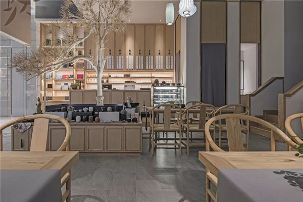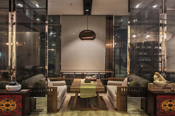 茶藝館的材質在茶藝館的設計中,最常用的是那些有著靈性的、最為普通的自然材質,例如玻璃、涂料、青磚、石灰等,追求其表面的質感和肌理變化。
