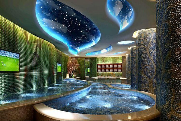 洗浴中心主要和水打交道,因此裝修最主要的是要做好防水功能。會所顧客與地面接觸時間最長,而與墻面一般不直接接觸,所以選擇地面材料要關注品質,地面建議走好防水。地磚的選擇注重質量,而墻磚更多講究美觀,如果想要裝修省錢,可以在墻磚上下功夫。