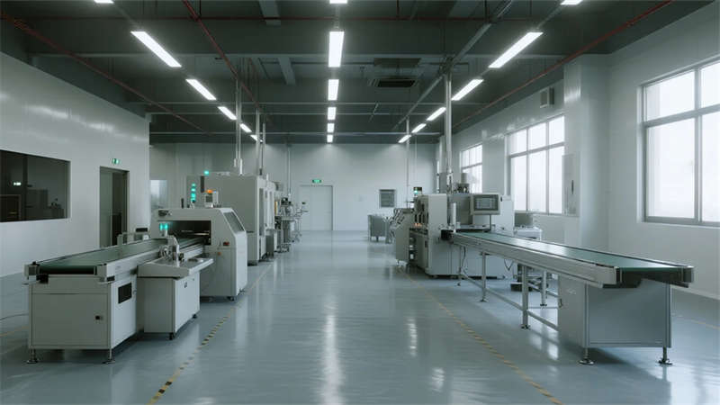 空間內核強調人性化體驗:挑高中庭以懸浮樓梯創造輕盈動線,屋頂花園成為員工觸摸自然的窗口;無柱車間與智能實驗室展現工業精密感,而木格柵連廊與綠植墻則注入人文溫度。夜幕降臨時,建筑化為光影容器,冷白光帶勾勒結構輪廓,暖黃窗格透出工作場景的活力。