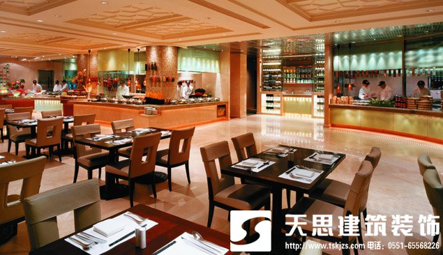 現代餐飲店越來越注重運用適應時代潮流的裝飾設計新理念,突出餐飲店經營的主體性和個性,滿足客人在快節奏的社會中追求完善舒適的心理需求。因此裝飾設計要體現"完美舒適即是豪華"這一新理念,一改傳統的繁瑣復雜的設計手法,通過巧妙的幾何造型、主體色彩的運用和富有節奏感的"目的性照明"烘托,營造出簡潔、明快、亮麗的裝飾風格和方便、舒適、快捷的經營主題。要讓共享大廳空間自然延伸,并與室外綠色景觀融為一體。客房裝飾要突出舒適感和人性化的設計理念。