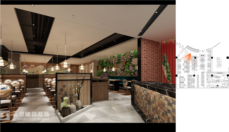 火鍋店是全國上下都喜歡的美食,起源于四川,遍布于全國甚至全球。人們不但在這里享受美食帶來的快樂,同時也開展人際交往、增進感情等活動和作用。讓顧客安全、愉快、舒暢地享受美食的樂趣,享受人際交往的樂趣,是一個裝修公司的重要任務。天思裝飾擁有多年的裝修施工和設計經驗,專業化的設計視角打造特色的火鍋店裝修。在企業營銷活動中借鑒各類文化因素,有效地豐富餐飲品牌的內涵。對于火鍋店的裝修也要花些心思,才能提高餐飲店的鮮明的個性和地域特色。天思裝飾,專業的合肥火鍋店裝修設計公司,還提供合肥火鍋店裝修報價和經典的火鍋店裝修效果圖,并承接外地的火鍋店裝修設計及施工。
