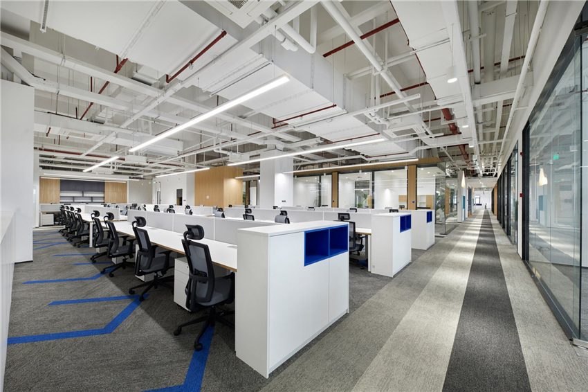 放射狀燈帶延續至空間四周極具視覺沖擊力,動靜結合、張弛有度,傳達著空間的動感和大氣。也強烈釋放著研發企業自信的特質。