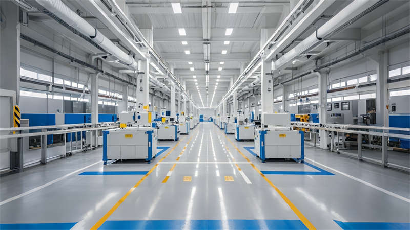 本6500㎡廠房設(shè)計采用現(xiàn)代工業(yè)風(fēng)為核心,融合功能性與科技美學(xué)。空間規(guī)劃嚴(yán)格遵循生產(chǎn)流程,劃分生產(chǎn)、倉儲、辦公、輔助四大模塊,通過鋼架玻璃隔斷實現(xiàn)通透性與分區(qū)管理。主色調(diào)選用深灰、淺灰、企業(yè)藍(lán)三色體系,地面采用耐磨環(huán)氧地坪漆,墻面運(yùn)用金屬波紋板與混凝土質(zhì)感涂料。智能化設(shè)計貫穿全廠,集成AGV物流系統(tǒng)、環(huán)境監(jiān)測屏及LED導(dǎo)向標(biāo)識。重點(diǎn)區(qū)域如入口LOGO墻、橙色休息區(qū)等植入色彩心理學(xué)應(yīng)用,既保持工業(yè)空間理性特質(zhì),又提升員工舒適度。照明系統(tǒng)采用分級控制,生產(chǎn)區(qū)6500K高顯指LED工礦燈保障作業(yè)精度,辦公區(qū)4000K暖光營造高效氛圍。