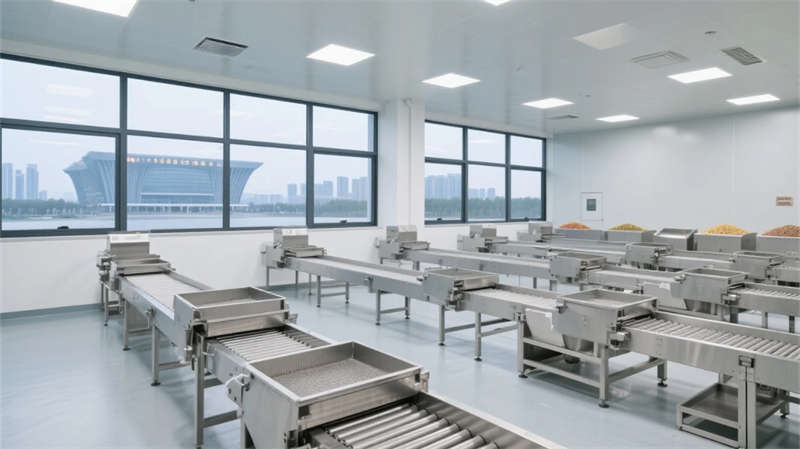該設(shè)計(jì)將食品制造轉(zhuǎn)化為空間美學(xué)實(shí)踐,通過玻璃幕墻構(gòu)建內(nèi)外視覺對話,使合肥的城市脈動成為生產(chǎn)背景。核心車間采用全透明隔斷,不銹鋼設(shè)備與藍(lán)色光暈在環(huán)氧地坪上交織,形成精密而潔凈的科技圖景。