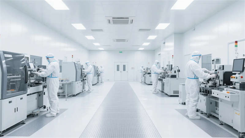 本項目以現代簡約美學重構半導體產業空間,將科技功能與人文環境無縫銜接。建筑外立面采用玻璃與金屬的碰撞,幾何切割線條傳遞工業力量感,同時通過灰白主色與局部科技藍的跳色,營造冷靜理性的視覺基調。內部空間嚴格遵循潔凈生產邏輯,千級無塵車間以純白環境保障精密工藝,研發實驗室則通過透明隔斷與智能設備凸顯技術前沿性。