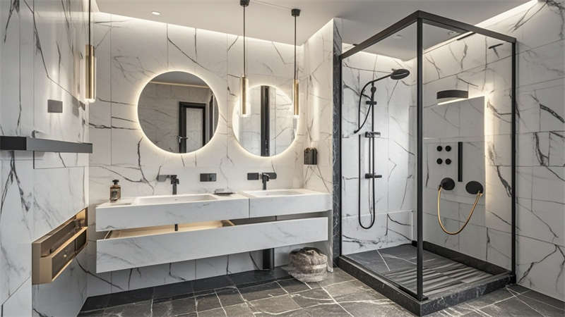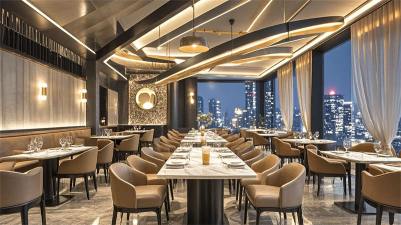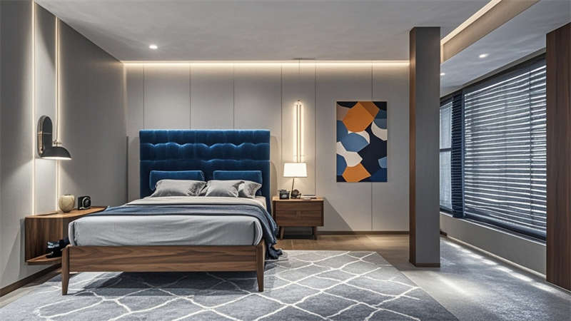 本2000平現代簡約風格酒店設計以'城市綠洲'為核心理念,通過流線型空間布局構建高效動線。大堂采用懸浮式水晶燈與淺灰大理石地面形成視覺焦點,金屬與木質的冷暖對比提升空間質感??头繀^運用深藍與淺灰的撞色搭配,配合智能照明系統實現多場景模式切換。公共區域大量運用無框玻璃隔斷,保持空間通透性的同時實現功能分區。色彩體系以米白為基底,點綴深胡桃木與香檳金,局部運用幾何紋樣增強設計感。材料選擇注重環保與耐用性,石材、金屬與吸音材質的組合兼顧美觀與實用。燈光設計采用多層次照明系統,筒燈、燈帶與裝飾照明相結合,營造舒適光環境。各功能區域通過統一的材質語言和色彩邏輯保持整體協調,同時根據不同使用需求進行個性化設計,如會議室配備移動隔斷實現靈活分隔,健身中心采用防滑橡膠地板等專業處理