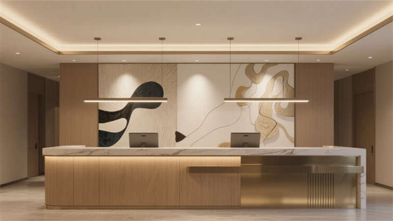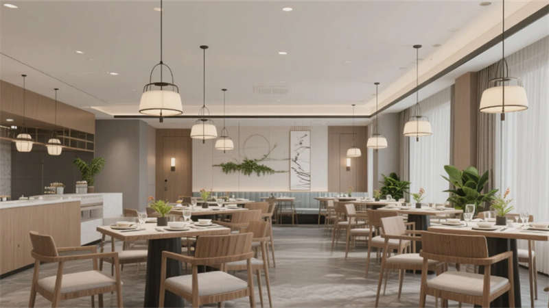 這個(gè)酒店設(shè)計(jì)以現(xiàn)代簡(jiǎn)約風(fēng)格為核心,通過(guò)統(tǒng)一的色調(diào)和元素,創(chuàng)造出和諧而優(yōu)雅的空間體驗(yàn)。大堂作為入口,以淺木色和白色為主調(diào),配以舒適的沙發(fā)和綠植,營(yíng)造出welcoming的氛圍。前臺(tái)延續(xù)簡(jiǎn)約理念,木質(zhì)柜臺(tái)和藝術(shù)細(xì)節(jié)彰顯精致感。餐廳采用開(kāi)放式布局,木質(zhì)桌椅和吊燈的點(diǎn)綴,讓用餐時(shí)刻充滿輕松與自然氣息。酒吧區(qū)則以深色吧臺(tái)和暖光照明,提供私密而時(shí)尚的社交空間。客房設(shè)計(jì)注重舒適與隱私,大窗戶引入城市景觀,簡(jiǎn)約家具確保寧?kù)o的休憩環(huán)境。會(huì)議室專業(yè)而高效,中性色調(diào)和隱藏照明支持專注的商務(wù)活動(dòng)。健身房融入鏡面和綠植,活力十足又不失簡(jiǎn)約美感。水療區(qū)則強(qiáng)調(diào)寧?kù)o,柔和燈光和自然元素促進(jìn)身心放松。整個(gè)項(xiàng)目強(qiáng)調(diào)人與環(huán)境的連接,每個(gè)功能區(qū)都服務(wù)于寧?kù)o與精致的整體體驗(yàn),為賓客打造難忘之旅。