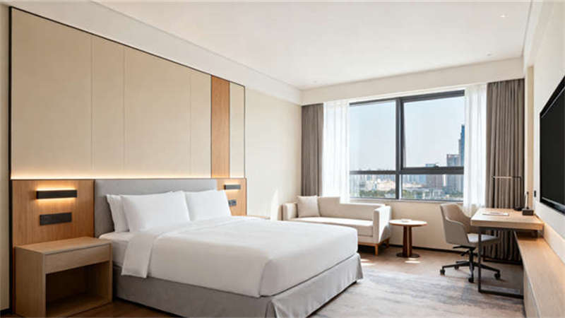 外觀設(shè)計(jì)摒棄繁雜裝飾,采用簡(jiǎn)潔的線條與溫潤(rùn)的材質(zhì)搭配,既展現(xiàn)出酒店的大氣質(zhì)感,又融入了對(duì)周邊環(huán)境的適配性,避免過(guò)于突兀的視覺(jué)沖擊。室內(nèi)部分,大堂以開(kāi)闊的空間布局為基礎(chǔ),通過(guò)柔和的燈光與自然材質(zhì)的運(yùn)用,營(yíng)造出溫馨且具格調(diào)的接待氛圍,讓賓客步入時(shí)便能感受到舒適感;客房聚焦居住的實(shí)用性與舒適度,軟裝搭配注重色彩的協(xié)調(diào),家具選型兼顧美觀與功能性,為賓客打造休憩的理想空間;餐廳設(shè)計(jì)則圍繞用餐體驗(yàn)展開(kāi),燈光與餐桌布局相互配合,營(yíng)造出適宜聚餐或獨(dú)處的用餐氛圍;會(huì)議室注重空間的功能性,合理的桌椅擺放與完善的配套設(shè)計(jì),滿足不同會(huì)議場(chǎng)景的需求;健身房以簡(jiǎn)潔明快的風(fēng)格為主,確保運(yùn)動(dòng)空間的通透感,讓賓客在運(yùn)動(dòng)時(shí)保持愉悅心情;游泳池周邊則通過(guò)軟裝與燈光的搭配,營(yíng)造出放松愜意的氛圍,為賓客提供休閑放松的好去處。整體設(shè)計(jì)始終以提升賓客體驗(yàn)為核心,讓每個(gè)空間既具自身特色,又能融入整體風(fēng)格之中。