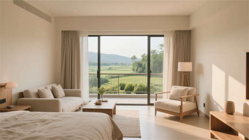 公共區域如大堂和餐廳,采用挑高與開放布局,光線成為空間的主角。客房設計去繁就簡,注重舒適性與視野,每間房都能感受到不同的自然片段。屋頂露臺是項目的亮點,成為客人放空或社交的絕佳場所。整體設計不刻意追求裝飾,而是通過材質、光影與自然對話,為都市人提供一處回歸寧靜的棲息地。