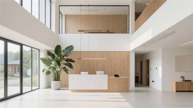 這座鄉村民宿以現代簡約風格為核心,將自然與建筑融為一體。設計強調線條的干凈利落和材質的原生質感,白色墻面與木質結構形成對比,大面積的玻璃引入田野與天空的景致,讓室內外界限模糊。庭院保留原生植被,通過碎石與木平臺的組合,營造出輕松的氛圍。
