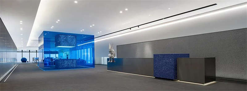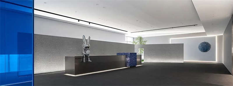 室內(nèi)空間由功能家具和裝置形成自然分隔,空間整體因祛除隔斷而產(chǎn)生了流動,這與科學(xué)巨匠斯蒂芬·霍金的宇宙觀具有一種相通性。太空兔和隕石一起來到這里,被安置在接待臺和會議室中,向來訪的人們講述宇宙的故事,猶如那些激動人心的創(chuàng)業(yè)事跡一樣,源于有限的奇點(diǎn),產(chǎn)生突破界限的無窮能量。