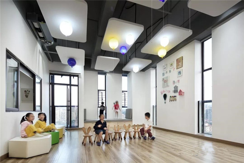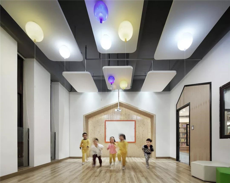 多功能室與互動教室不做具象的使用功能,留空間給孩子挖掘,以保持孩子的活躍度。發揮實體建筑落地窗的優越性,將通風、采光做到極致。