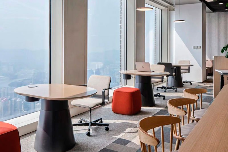 后場(chǎng)辦公區(qū)延續(xù)了前廳的辦公理念,結(jié)合不同功能形式的會(huì)議室、電話間,提供了多選擇的工作模式,簡(jiǎn)潔而高效。大量可再生面料的墻飾、可回收吸音板和仿生苔蘚的應(yīng)用,豐滿了視覺層次并極大提升了空間的聲學(xué)效果。