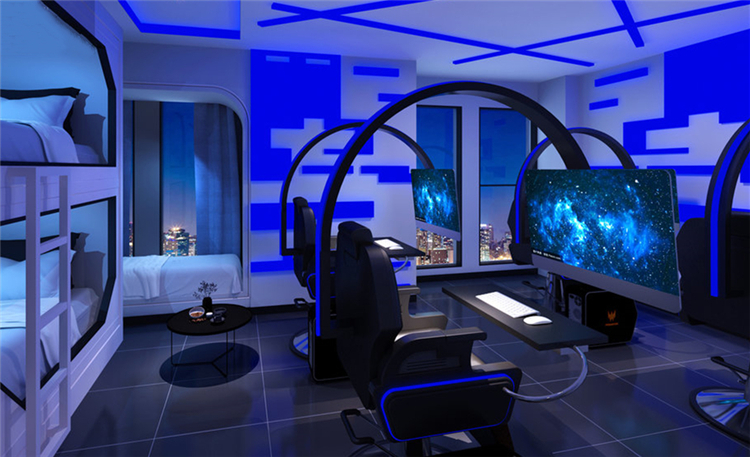 酒店作為服務(wù)行業(yè),不論是服務(wù)還是裝修風(fēng)格總是與時(shí)代發(fā)展同步進(jìn)行的。剛剛過(guò)去的2019給了電競(jìng)行業(yè)發(fā)展更多的思考,酒店在裝修設(shè)計(jì)中為了迎合這類(lèi)越來(lái)越專(zhuān)的群體的住宿和延展性要求,在室內(nèi)裝修設(shè)計(jì)中也投入了更多的思考。