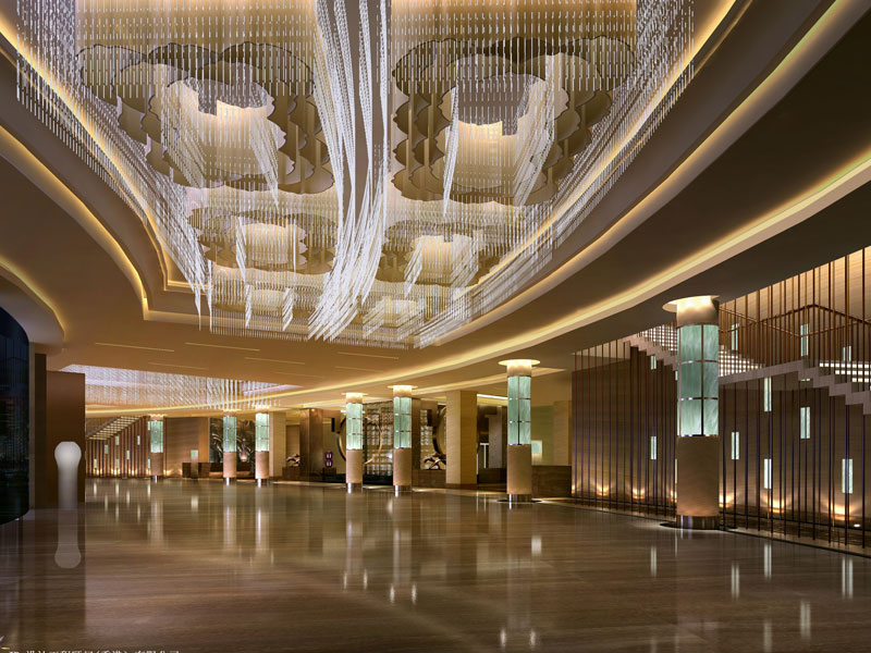 根據(jù)酒店室內(nèi)其功能分區(qū)的不同,大堂設(shè)計(jì)的類型也不僅僅只有一種。其中一些大堂通道也許會通往商店區(qū)、餐飲區(qū)、會議區(qū)等各類型功能空間,甚至也有可能通往與之設(shè)計(jì)風(fēng)格截然不同的各種商業(yè)區(qū),尤其是某些設(shè)計(jì)個性鮮明的空間。顯然在這種形式下,大堂已然成為了這些多元空間相互碰撞、相互協(xié)調(diào)的消化體。巧妙的大堂設(shè)計(jì),使建筑外部環(huán)境以及室內(nèi)各空間融合成一個集滿足功能需求、造型藝術(shù)美感于一身的多元體,達(dá)到把簡單的“多樣性”歸納為多元的"統(tǒng)一性”的目的。