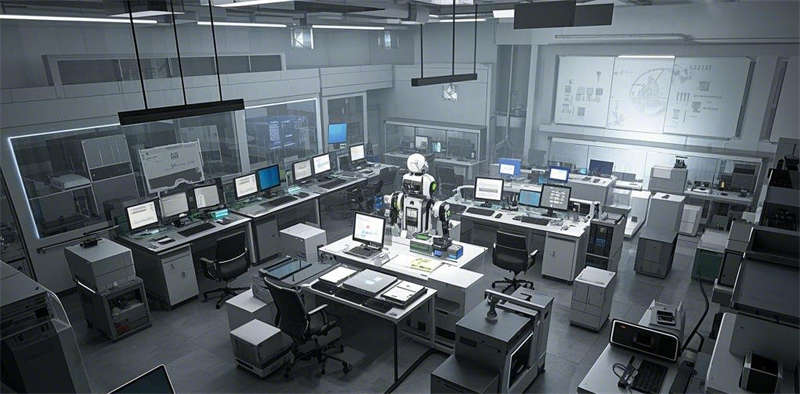 本次1000平方米機(jī)器人制作實驗室設(shè)計以高效、科技與人性化為核心,打造多功能研發(fā)與生產(chǎn)空間。入口與接待區(qū)現(xiàn)代簡約,配備企業(yè)標(biāo)識和科技感裝飾,營造專業(yè)氛圍。機(jī)器人組裝區(qū)寬敞實用,工作臺和自動化設(shè)備布局合理,滿足高效生產(chǎn)需求。研發(fā)與設(shè)計區(qū)開放式布局,配備3D打印機(jī)和白板,激發(fā)團(tuán)隊創(chuàng)造力。測試與調(diào)試區(qū)科技感十足,測試平臺和監(jiān)控設(shè)備確保產(chǎn)品性能。材料存儲與物流區(qū)高效有序,自動化搬運(yùn)設(shè)備提升效率。會議室與協(xié)作區(qū)設(shè)計簡潔,智能設(shè)備支持高效溝通。