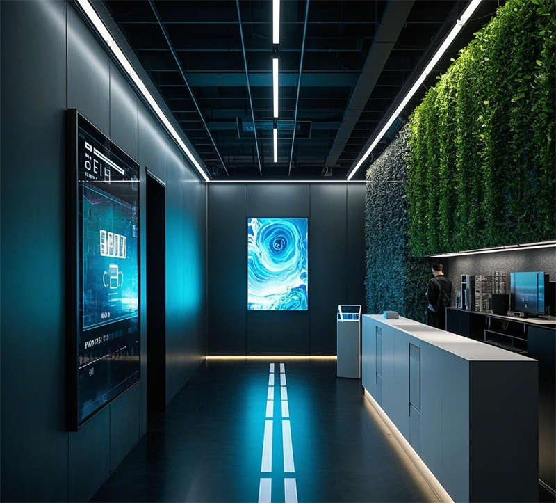 本設(shè)計充分考慮了辦公樓的不同功能區(qū),包括大堂、開放式辦公區(qū)、會議室、休息區(qū)、經(jīng)理辦公室、多功能廳、走廊和休閑露臺。每個區(qū)域有不同的設(shè)計重點,希望展示現(xiàn)代、科技感,同時兼顧舒適和環(huán)保,還要注意空間布局,比如開放式辦公區(qū)的協(xié)作性,會議室的隔音和多媒體設(shè)備,休息區(qū)的放松氛圍。