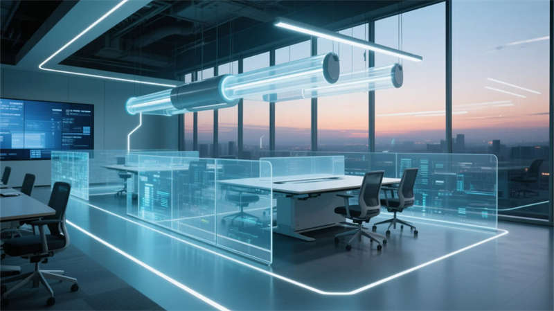 特別規劃的靜音矩陣如同散落的思維膠囊,磨砂艙體表面的呼吸光效在開放空間中劃出沉思領地。最具突破性的創客實驗室采用可變形界面系統,墻面、桌面與設備形成立體交互矩陣,配合中央全息投影臺,實現思維的可視化碰撞。健康艙內仿生生態系統與智能調光技術,在科技密度中守護人文溫度。