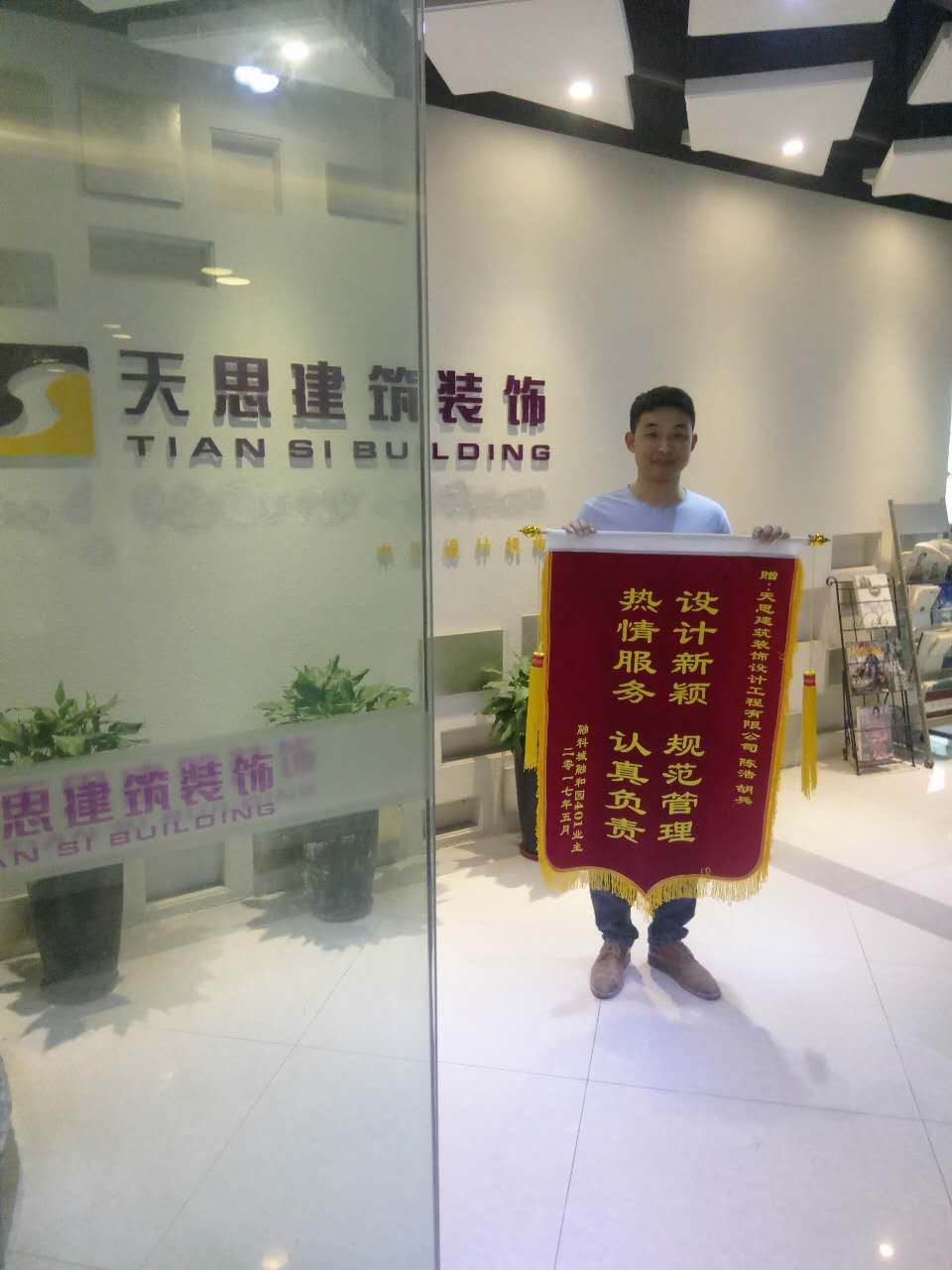 “服務(wù)熱情素質(zhì)好,辦事認(rèn)真效率高”是業(yè)主對天思裝飾的肯定。一直以來,天思裝飾的全體員工都盡力做好每一家的裝修工程,同時,業(yè)主為天思裝飾送來錦旗,也讓我們很是感動。