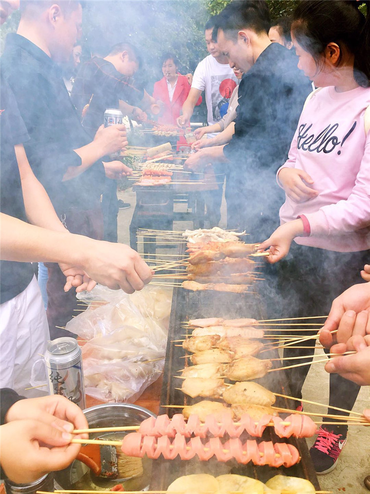 10月21日,大家準時到達目的地。領導與員工穿插入座, 拿材料、搬爐子、生火……看著熊熊的炭火燃燒著,整個現場頓時沸騰起來?;顒悠陂g,大家興致勃勃地互相交流,增進了相互之間的了解與認識,促進了部門與部門間的合作精神,拉近彼此的距離。
