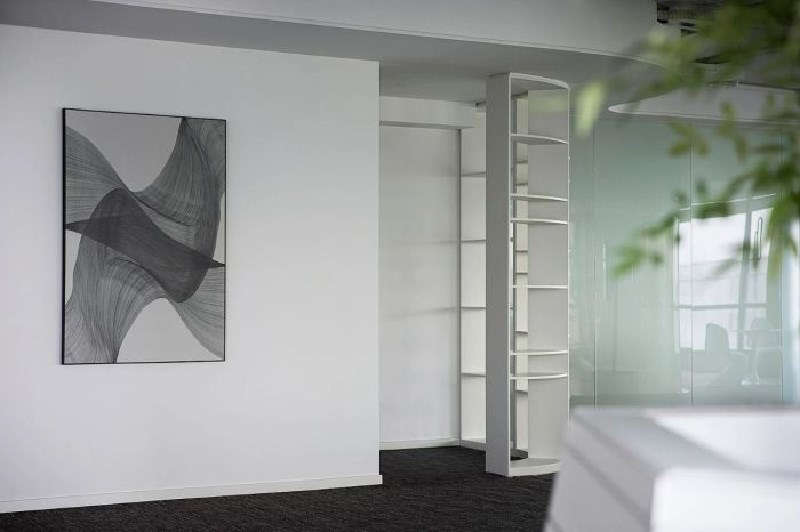 不同于以往辦公一味追求的對稱藝術(shù),經(jīng)由橫平豎直的線條勾勒,本案布局在硬朗的輪廓下規(guī)整有序,又與弧形彎道相輔相成,運用圓角規(guī)避各處尖銳轉(zhuǎn)折,柔和視覺。