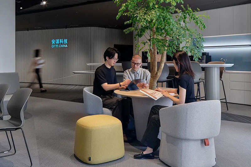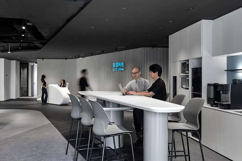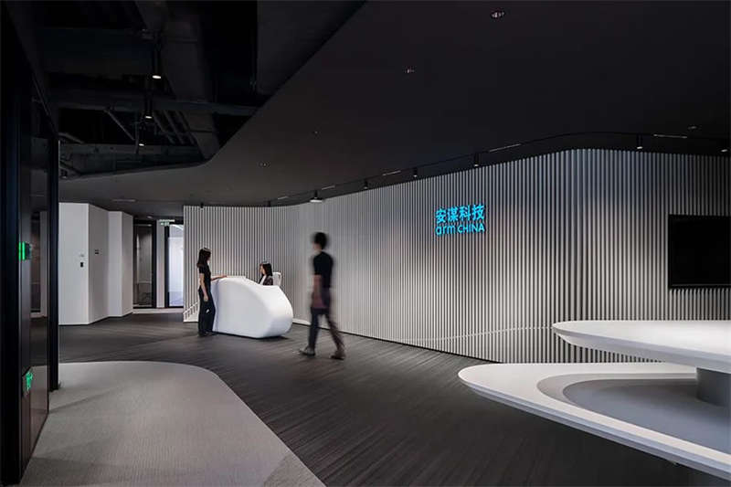 設計過程中也不乏挑戰(zhàn):如何在空間設計中顯示出Arm China 特有DNA以及未來辦公的前瞻性?一工團隊為此做了充分調研,成為智能計算生態(tài)的領航者,這是Arm的一個企業(yè)愿景,我們同時理解了Arm最新的VI轉型設計。設計師把此次項目當作一顆未來的種子,以點破面,將Arm的員工當作未來的種子和探索者。在空間中用動線、機理和光和設計手法引導來訪者在新的辦公空間朝向往的方向生長。