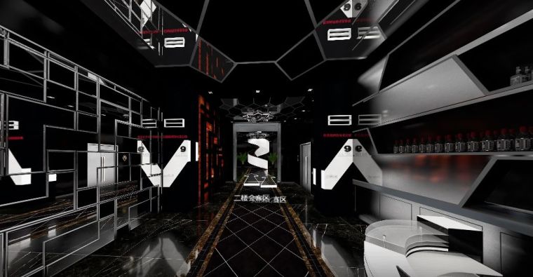 俗話說,氣氛不能輸,一個氣場極強的電競會館絕對可以讓玩家、選手釋放個人最大戰斗力,分泌更多的腎上腺素進入暴走狀態。本次案例整體設計上走的是現代前衛風,以黑色為主色調猩紅色為輔,搭配空間感十足的燈光和炫酷的裝飾元素,緊緊扣合“紅蜘蛛”的品牌主題,同時非常凸顯時尚特色,符合消費群體定位。