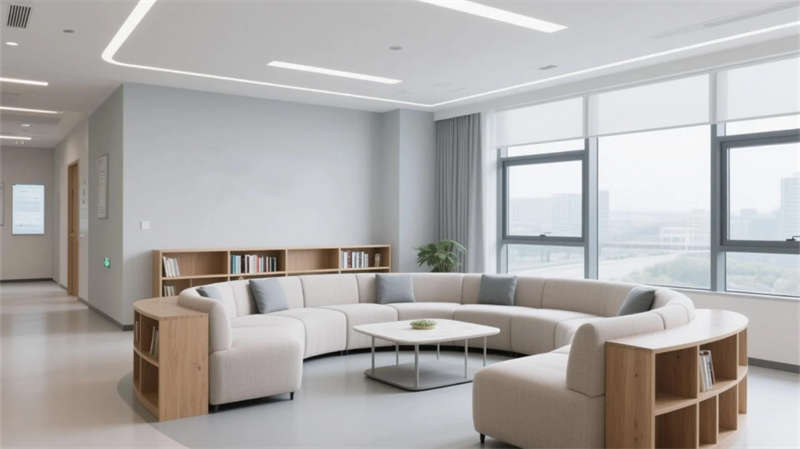 該社區(qū)醫(yī)院設(shè)計(jì)以現(xiàn)代簡(jiǎn)約理念為核心,營(yíng)造出溫馨而高效的醫(yī)療環(huán)境。整體空間強(qiáng)調(diào)人性化布局,接待大廳寬敞明亮,弧形接待臺(tái)與自然光結(jié)合,營(yíng)造親切的第一印象。候診區(qū)舒適寧?kù)o,沙發(fā)與書架的點(diǎn)綴減輕等待焦慮,診室則注重隱私與專業(yè)感,柔和色調(diào)提升患者信任。藥房設(shè)計(jì)簡(jiǎn)潔清晰,便于快速取藥,急診室布局高效,確保緊急響應(yīng)流暢。化驗(yàn)室和影像科突出功能性,無(wú)菌環(huán)境與設(shè)備集成保障精準(zhǔn)診療,康復(fù)區(qū)開(kāi)放通透,綠植與自然光促進(jìn)身心恢復(fù)。所有區(qū)域統(tǒng)一運(yùn)用中性色調(diào)、木質(zhì)元素和流線型家具,強(qiáng)化視覺(jué)連貫性,同時(shí)融入充足采光與綠意,打造舒緩氛圍。設(shè)計(jì)不僅提升醫(yī)療體驗(yàn),還呼應(yīng)了合肥的城市人文特色,為居民提供一處安心、便捷的健康港灣。