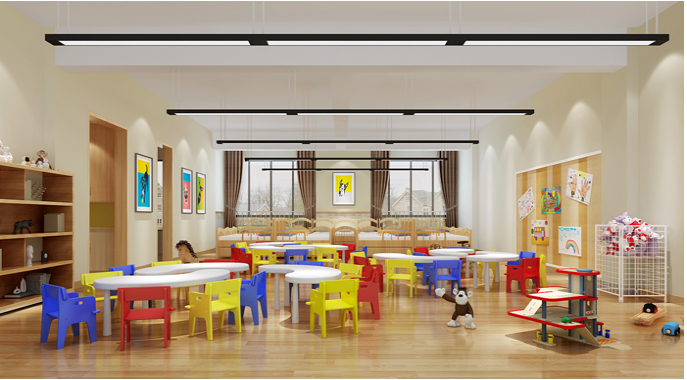 由于線條簡(jiǎn)單、裝飾元素少,現(xiàn)代簡(jiǎn)約需要軟裝來(lái)配合。如沙發(fā)與玩具等。軟裝到位是現(xiàn)代粉飾的關(guān)鍵。多功能的個(gè)性空間功能與空間組織,主要以木色為主,沒有太重,太跳的的顏色。以簡(jiǎn)潔的造型和別出心裁的擺放,打造溫馨,優(yōu)質(zhì)的幼兒園環(huán)境。