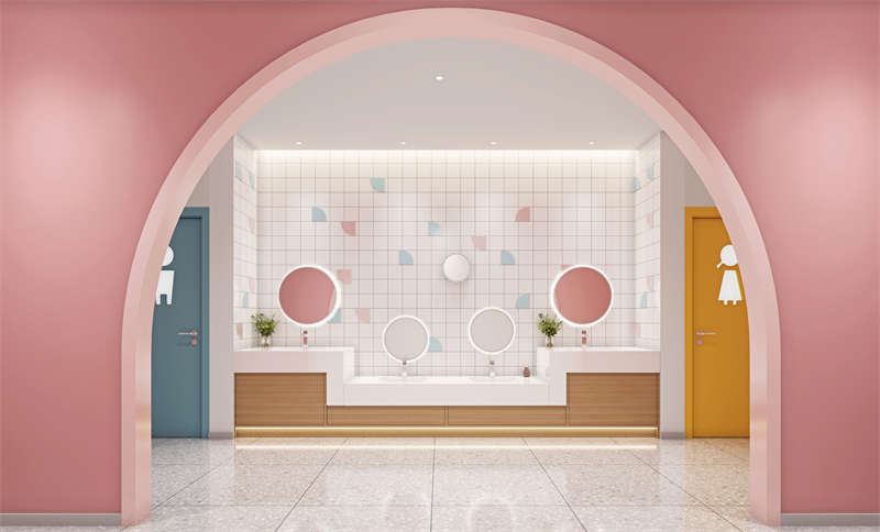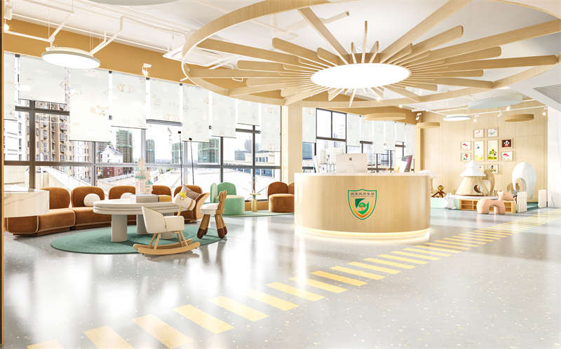 一般來說,幼兒園裝修使用的顏色應該是偏暖色系的,這樣有利于小朋友平時的活動,也會給幼兒帶來溫暖感。不過幼兒園顏色裝修大面積采用暖色系的顏色,會讓小朋友出現情緒上的煩躁,在視覺上長期處于暖色調的空間也會出現審美疲勞,冷色調的加入會使整個空間的色彩增加對比度,不同色調的相互搭配,讓幼兒園內環境具有可讀性。